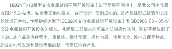 HXGN□-12箱型交流封閉環(huán)網(wǎng)開關(guān)設(shè)備